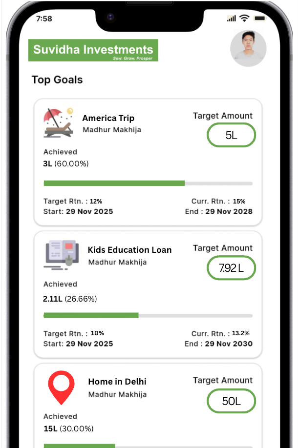 At Suvidha, we help you plan, invest & grow your money around your life goals - not just market trends